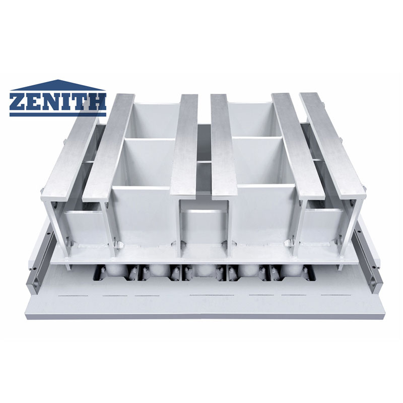 4) Zenith 1500 Single Pallet Block Making Machine සඳහා නව ගමන් මාර්ගයක් සකස් කර ඇති අතර එමඟින් තීරු තනි තනිව පැත්තෙන් ඉවත් කළ හැකිය. මෙම නව විශේෂාංගය නඩත්තු කටයුතු වලදී බොහෝ කාලයක් ඉතිරි කරන අතර හුවමාරුව වඩාත් ආරක්ෂිතව සහ අඩු උත්සාහයකින් සිදු කළ හැකිය. තීරු ඇතුළුව මෙම එකලස් කිරීමේ සම්පූර්ණ ජ්යාමිතිය පෙර යන්ත්රය ZENITH 1500 ට සමාන වේ. දැනට පවතින යන්ත්ර මත මෙම නව ගමන් මාර්ගය නැවත සකස් කළ හැක.